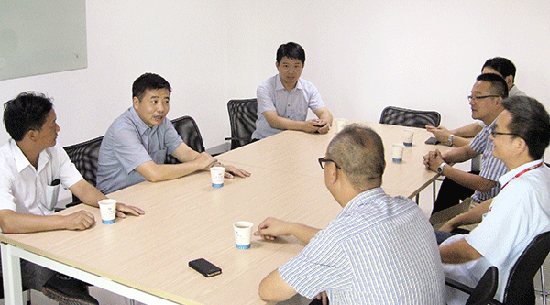 臨安市市長(zhǎng)王敏一行與福斯特董事長(zhǎng)林建華在會(huì)議室進(jìn)行會(huì)談