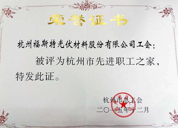 創建基層工會示范:福斯特榮獲臨安市2015年度基層工會建設示范單位等多項殊榮